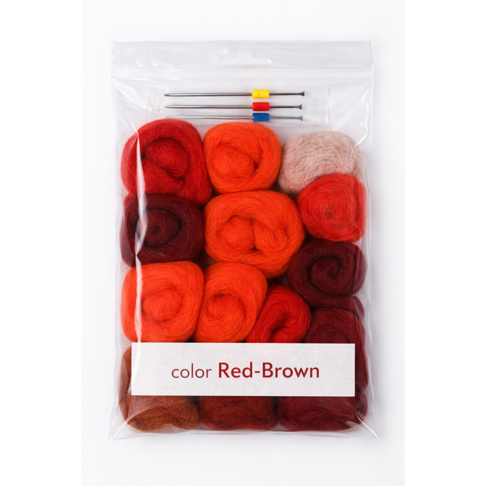 - Комплектът от новозеландска дарашка вълна и 3 игли за плъстене (размери S, M, L).